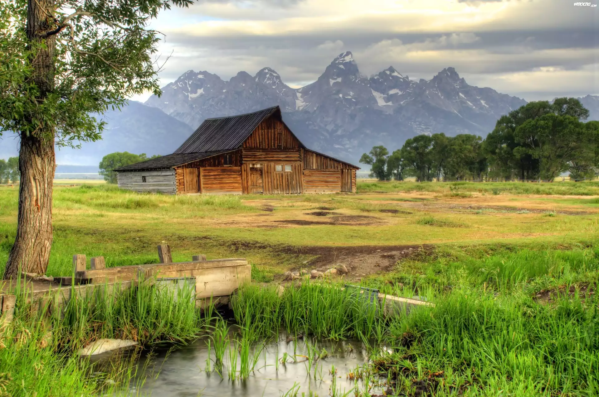 Zdjęcia, Góry, Dom, Chmury, Drzewa