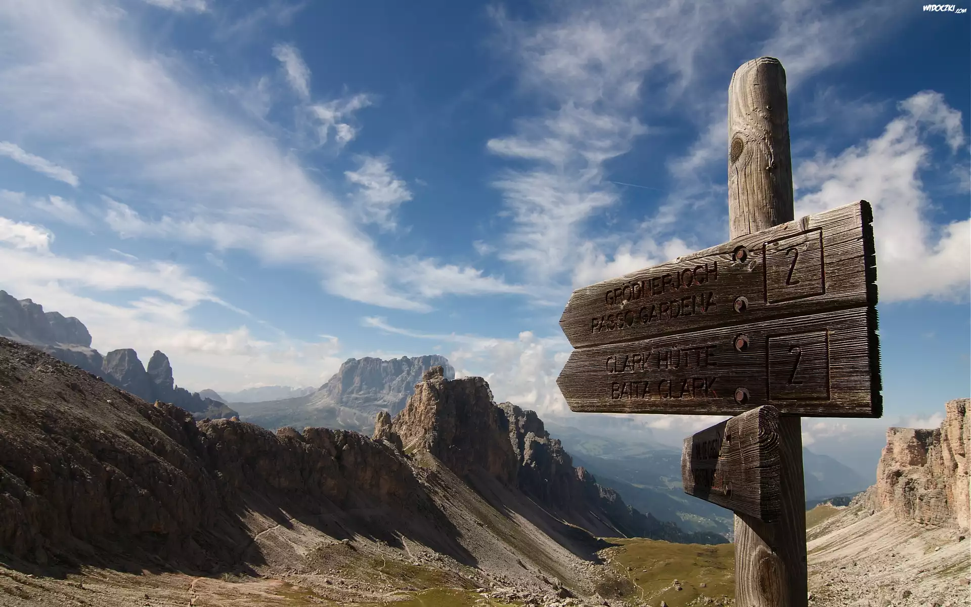 Zdjęcia, Chmury, Góry, Drogowskaz