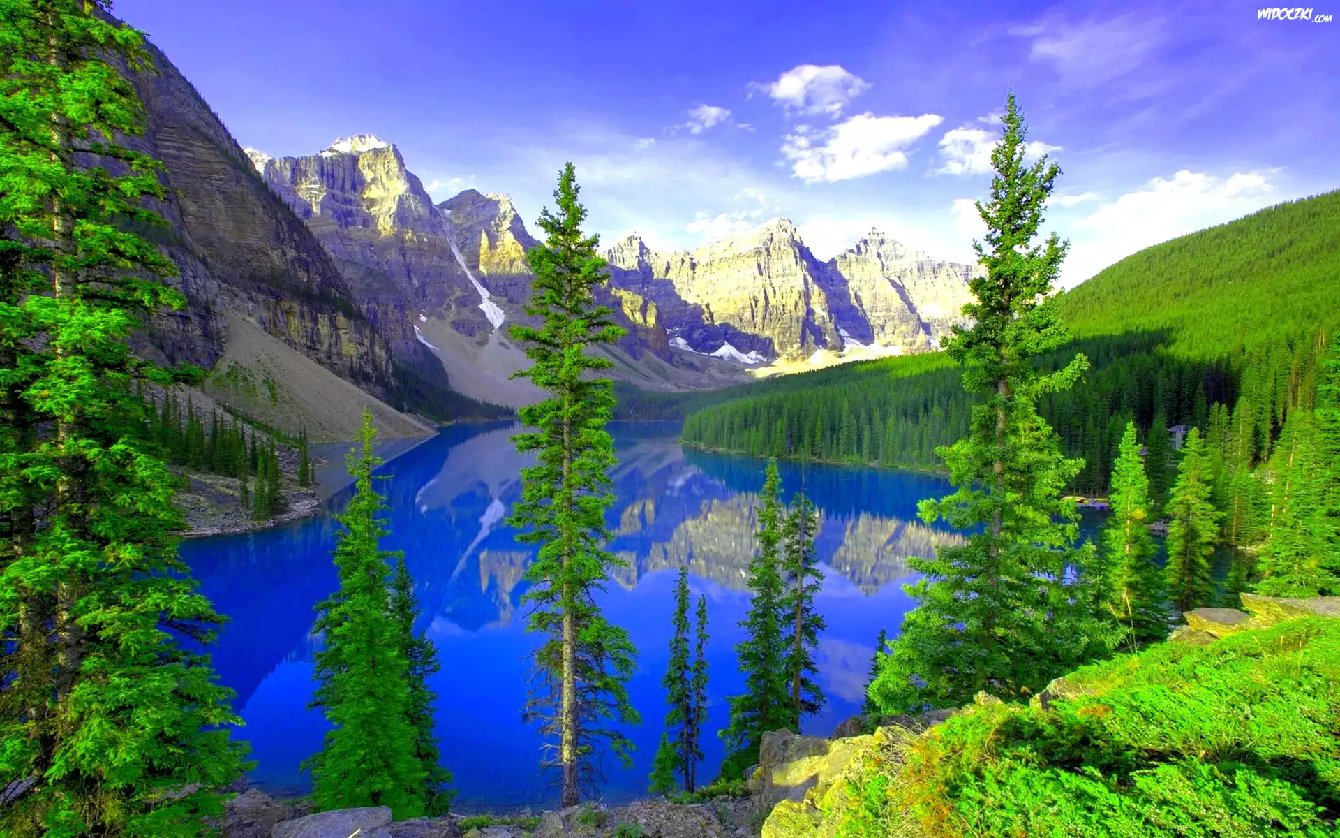 Góry, Jezioro, Chmury, Choinki