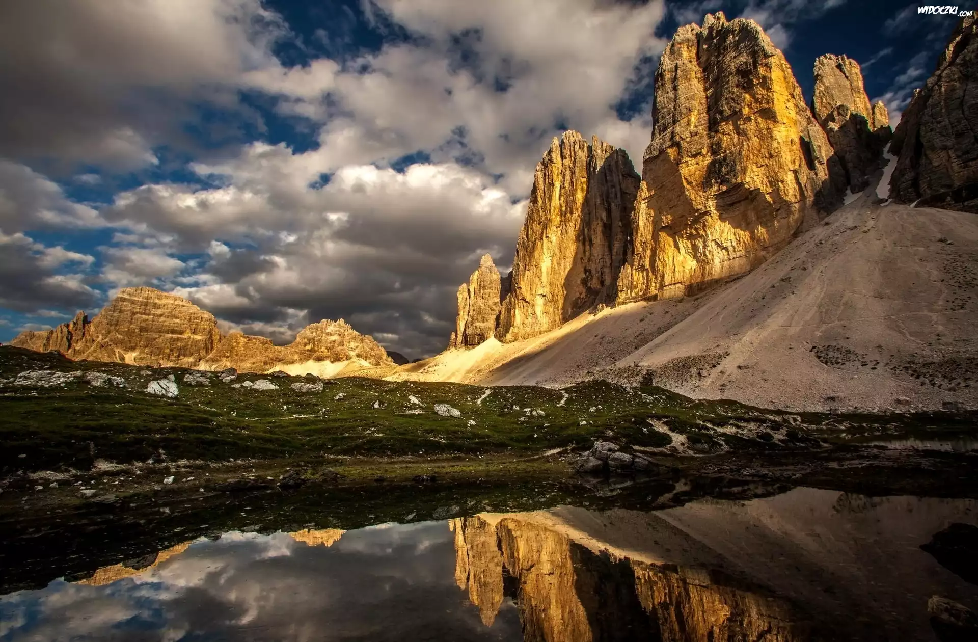Zdjęcia, Góry, Jezioro, Chmury, Odbicie