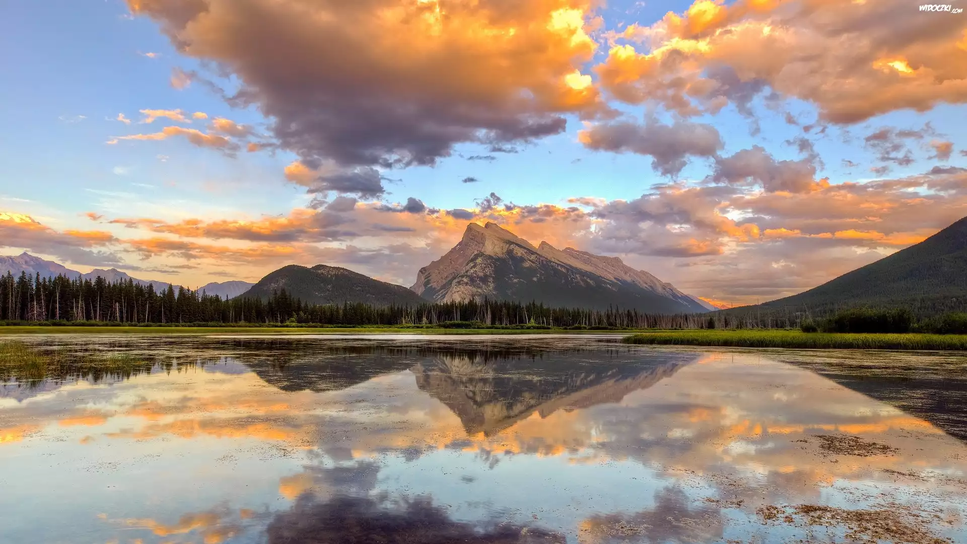 Zdjęcia, Góry, Lasy, Chmury, Woda