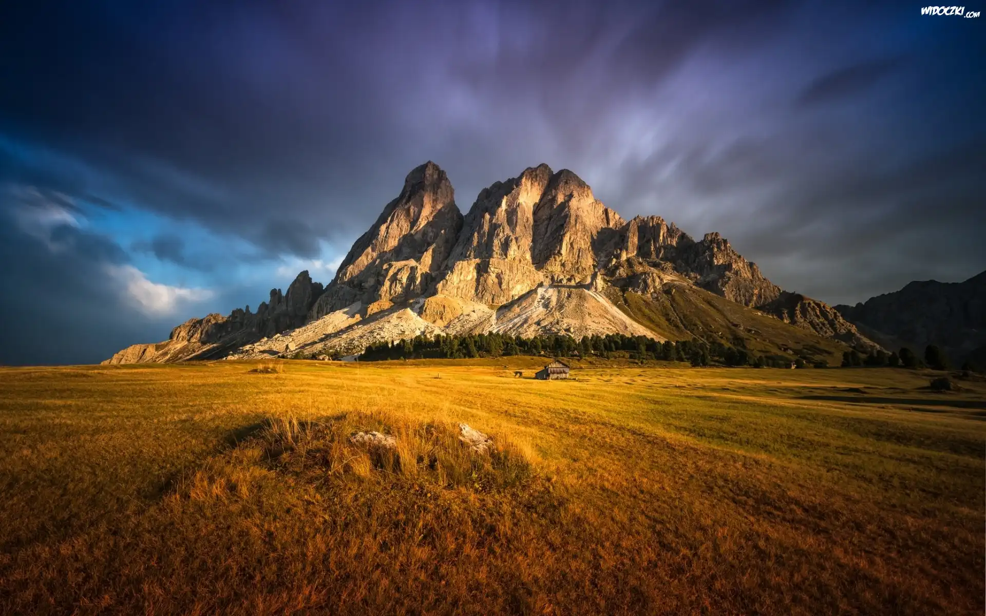 Góry, Niebo, Chmury, Roślinność