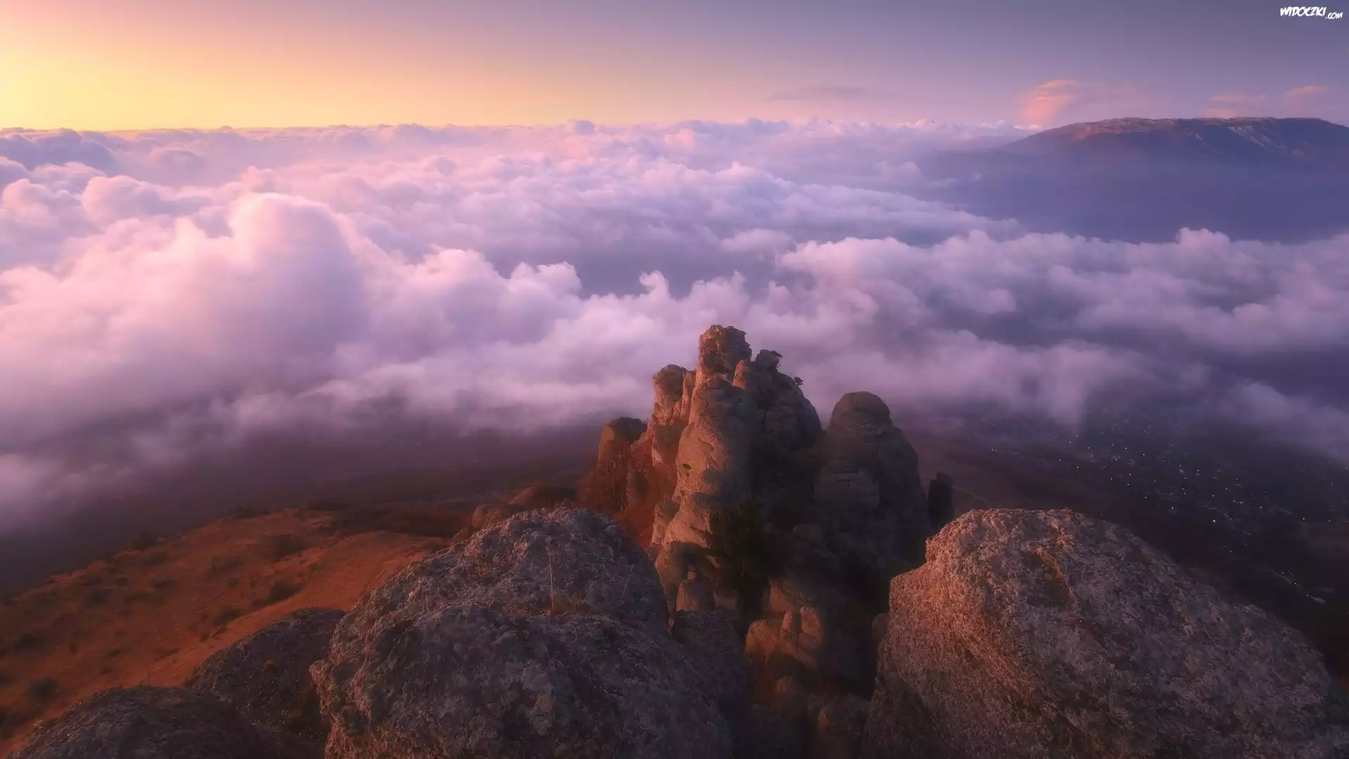 Zdjęcia, Góry, Skały, Chmury, Dolina