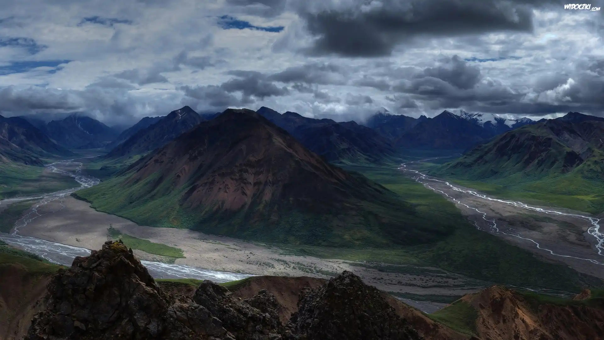 Zdjęcia, Góry, Szczyty, Chmury, Rzeka