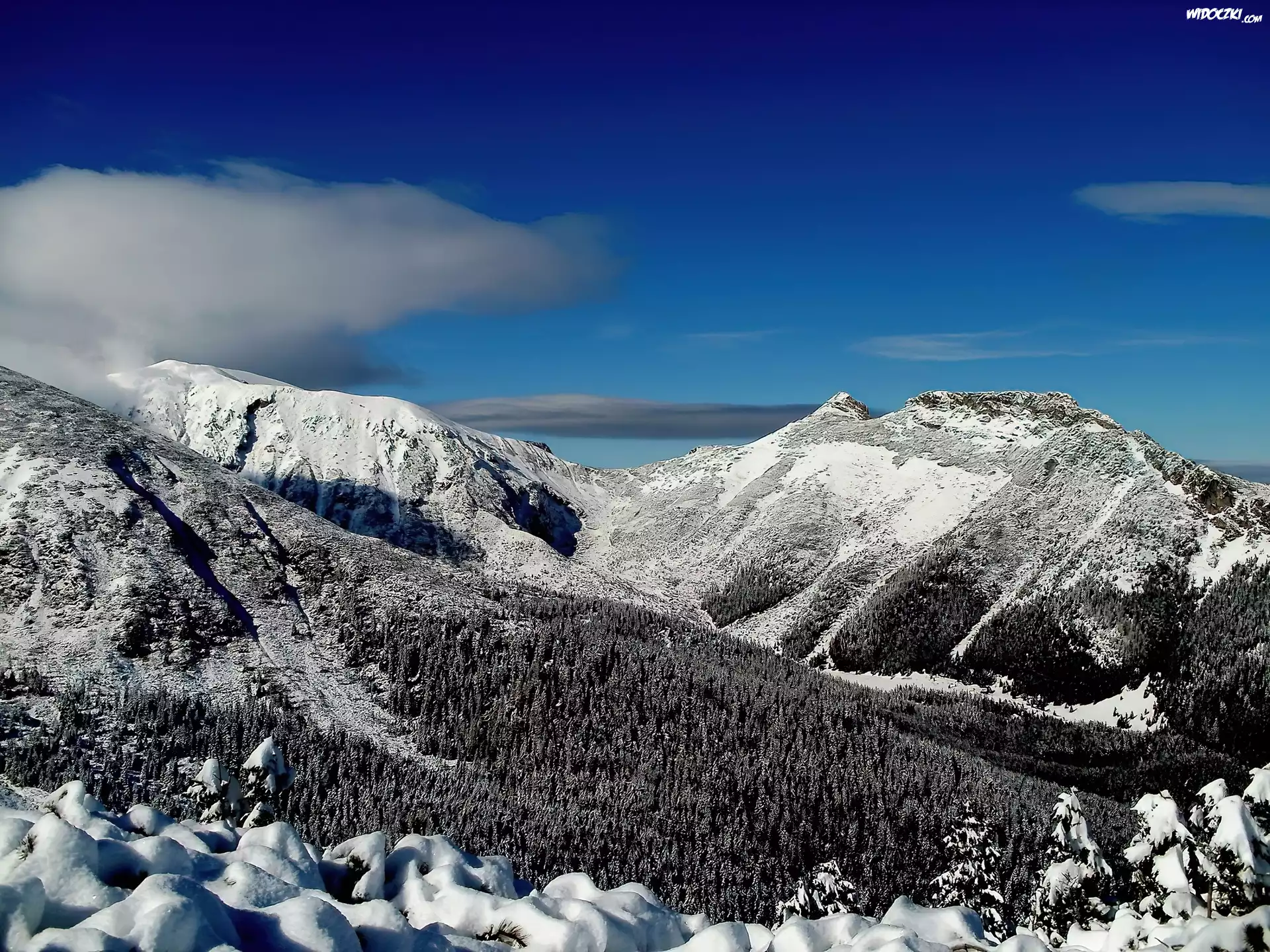 Zdjęcia, Góry, Zima, Chmury, Stok