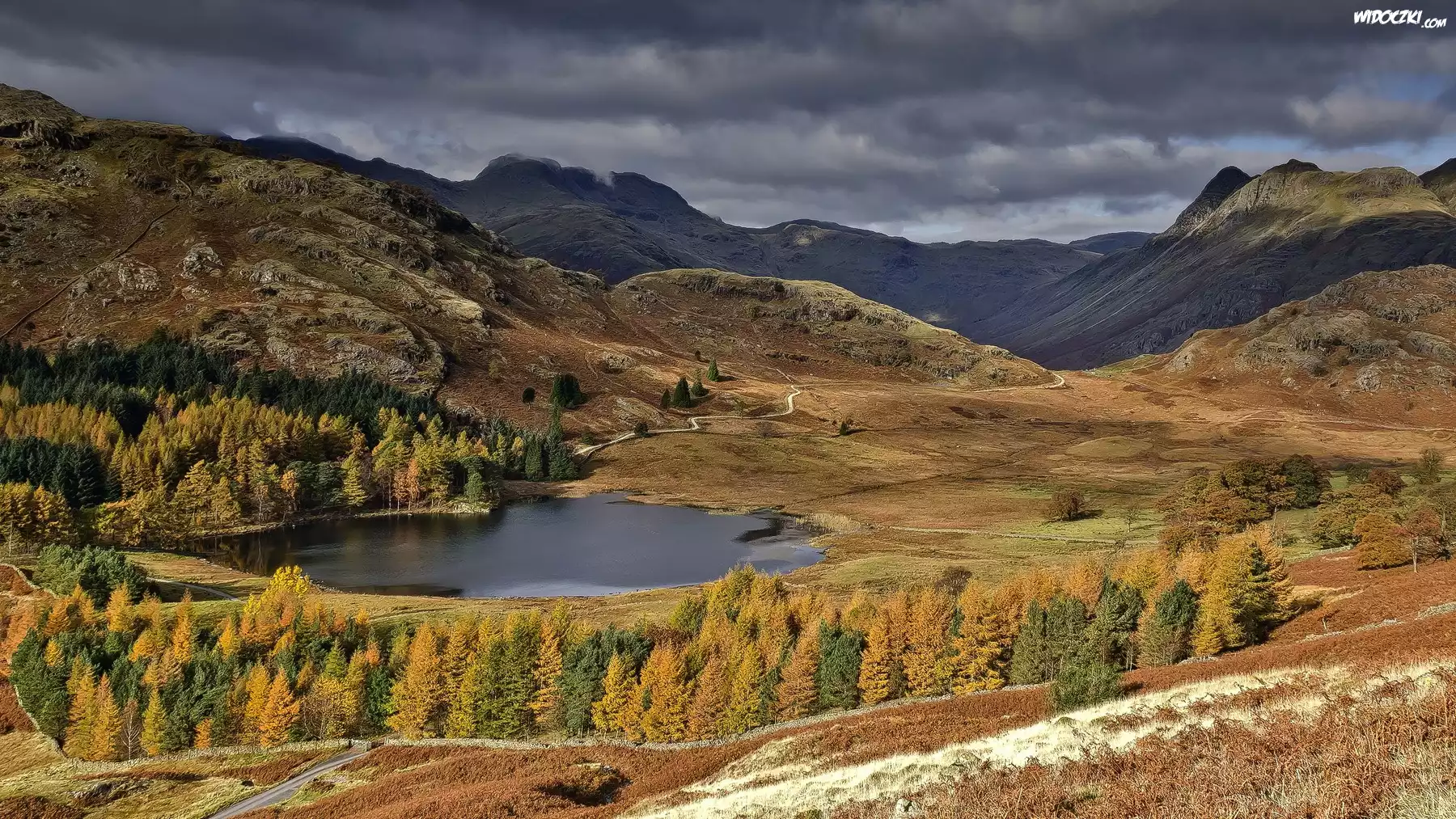 Góry, Lasy, Jezioro, Ciemne, Chmury