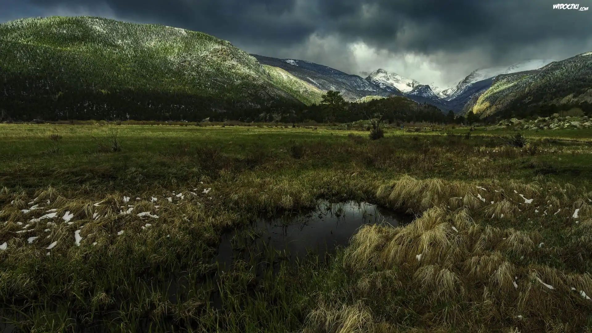 Zdjęcia, Góry, Łąka, Trawa, Ciemne, Chmury