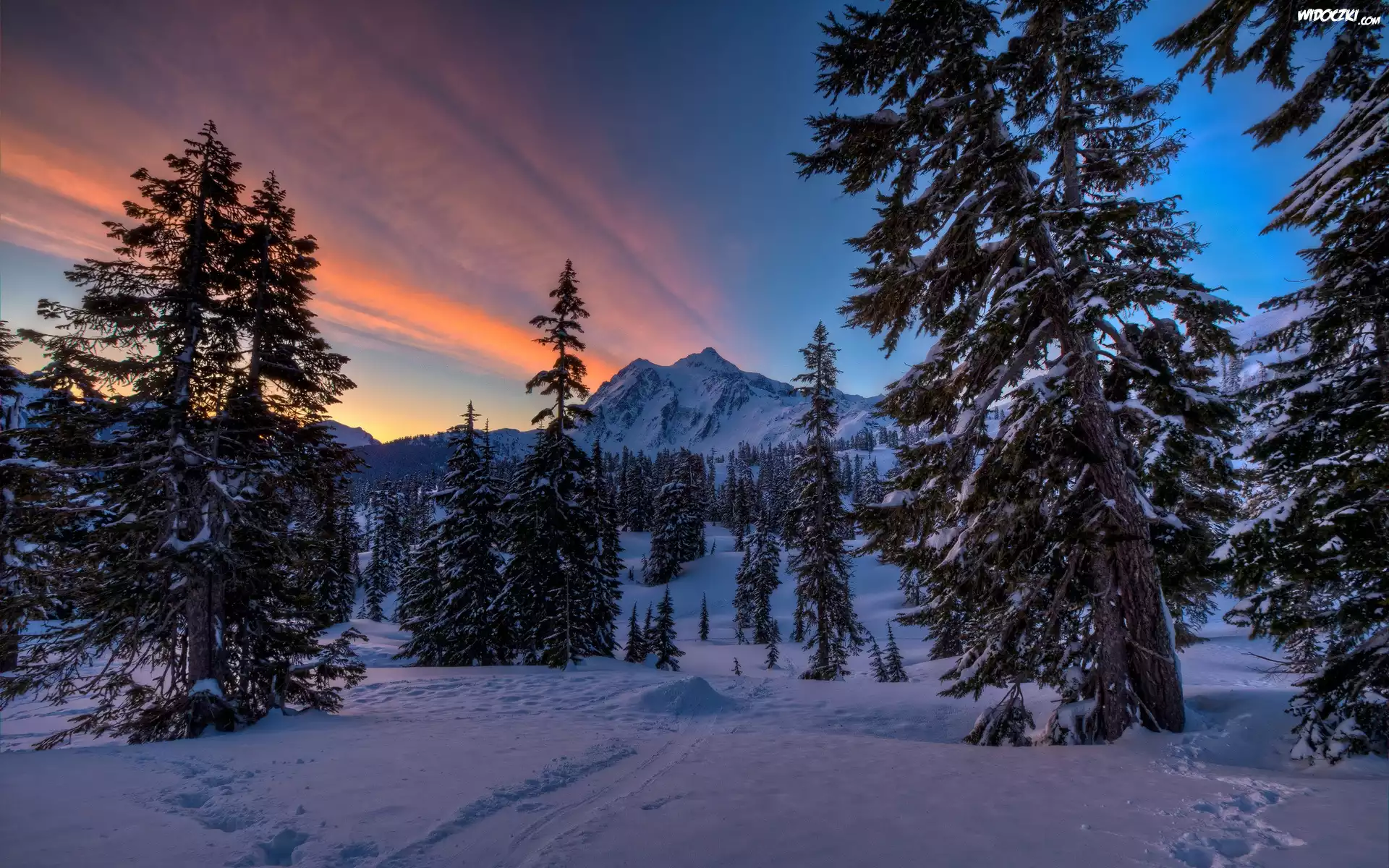 Góry, Lasy, Chmury, Ścieżka, Zima