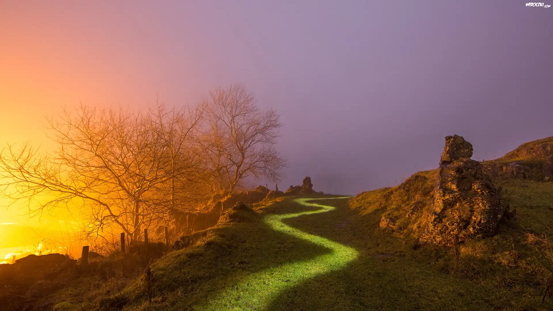 Zdjęcia, Góry, Promienie słońca, Ścieżka, Drzewa