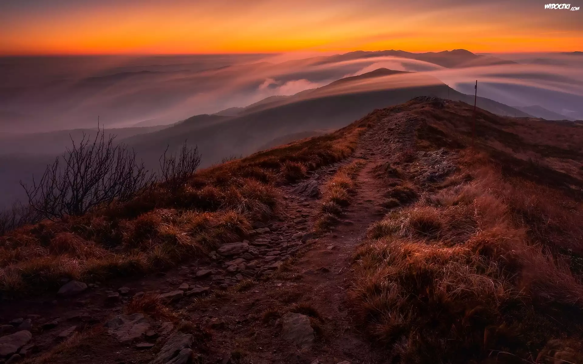Góry, Jesień, Trawa, Ścieżka, Mgła
