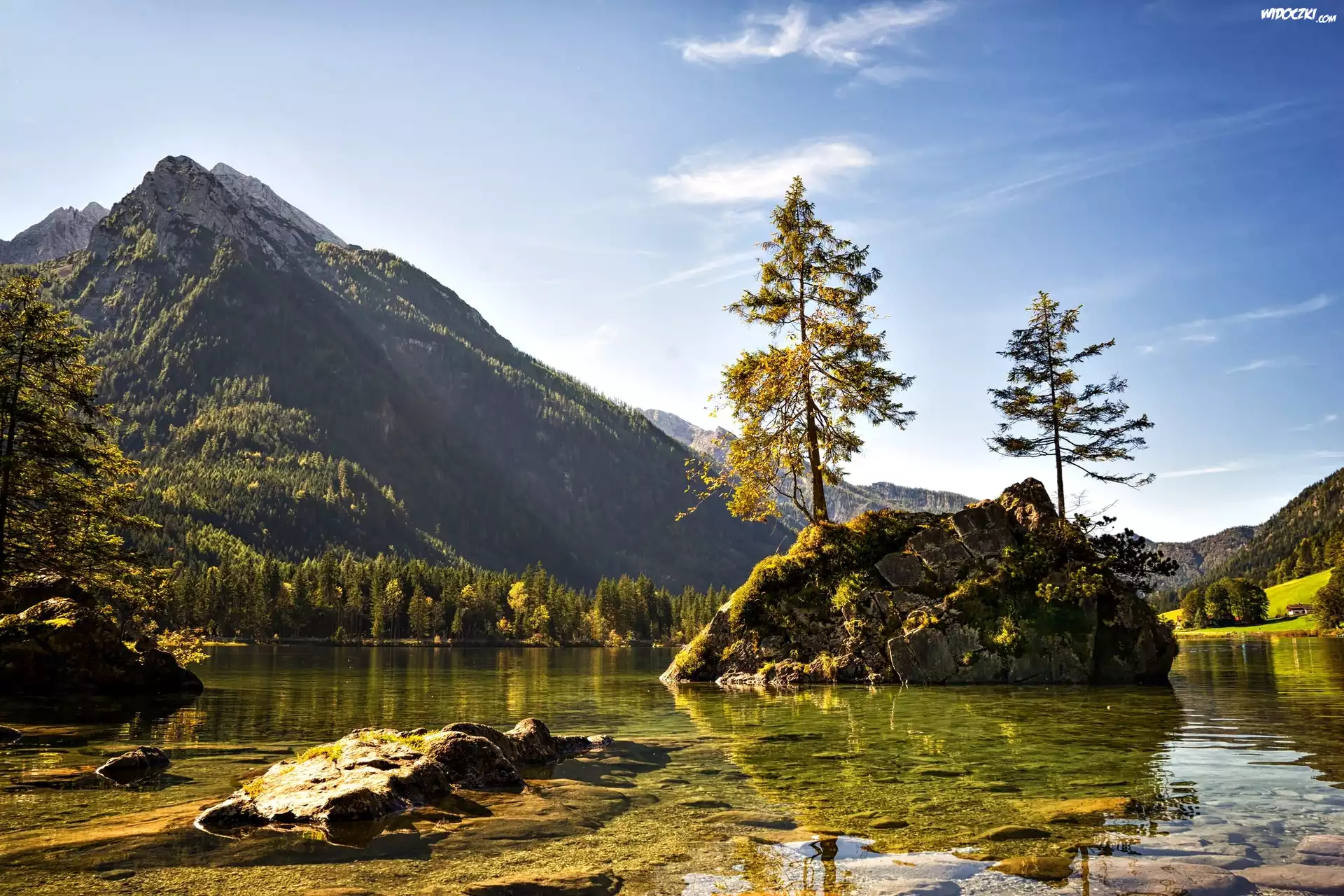 Zdjęcia, Góry, Jezioro, Skały, Drzewa, Dno, Kamienie