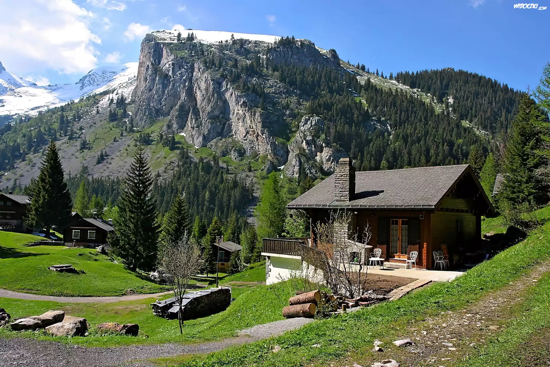 Zdjęcia, Góry, Alpy, Lasy, Dolina, Domy