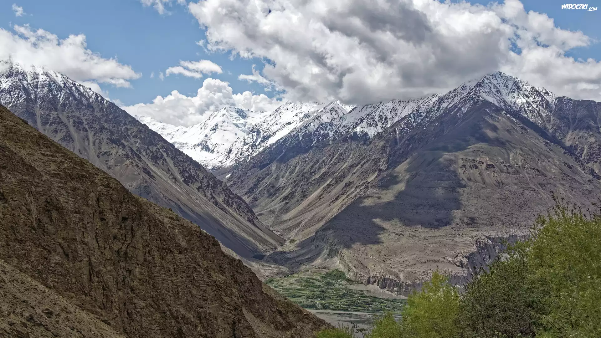 Zdjęcia, Góry, Ośnieżone, Szczyty, Dolina, Chmury