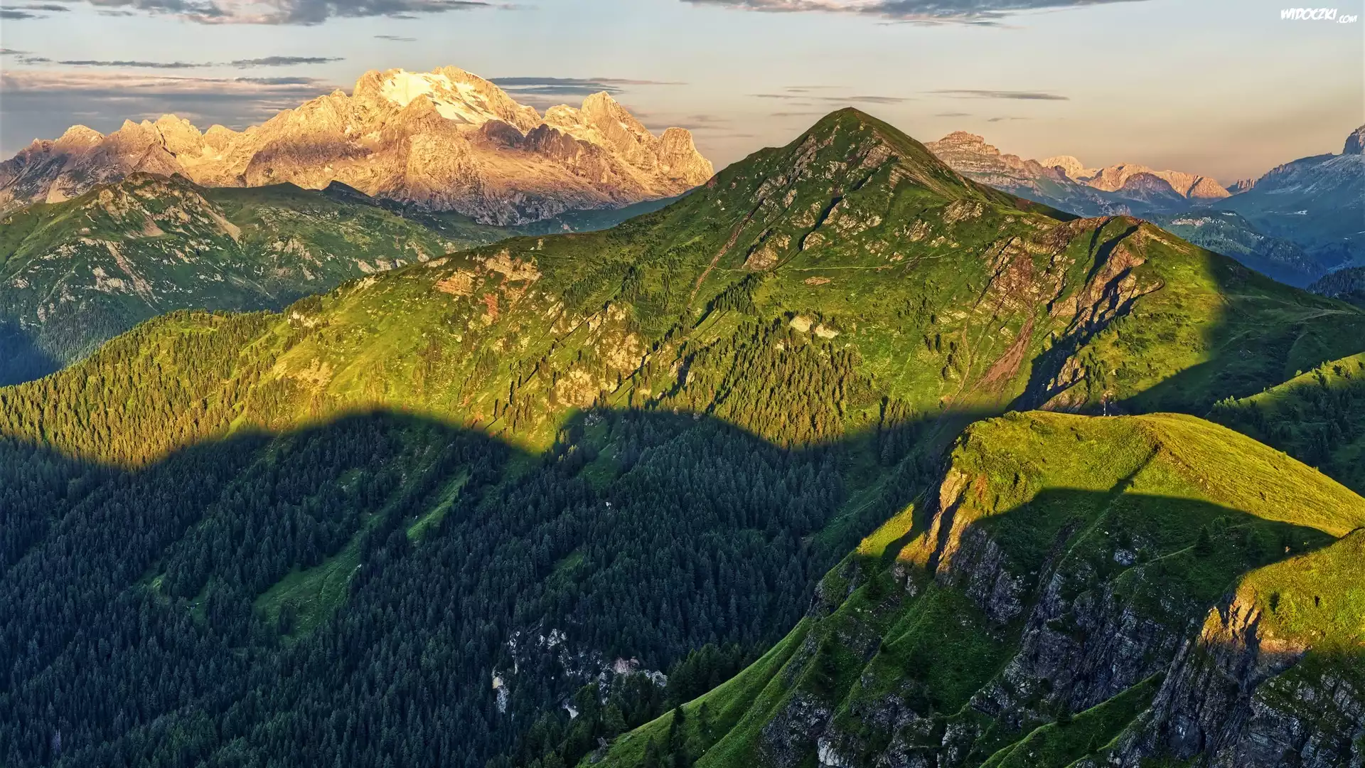 Zdjęcia, Zalesione, Skaliste, Góry, Szczyty, Dolomity, Góra Marmolada, Góra Monte Pore, Włochy
