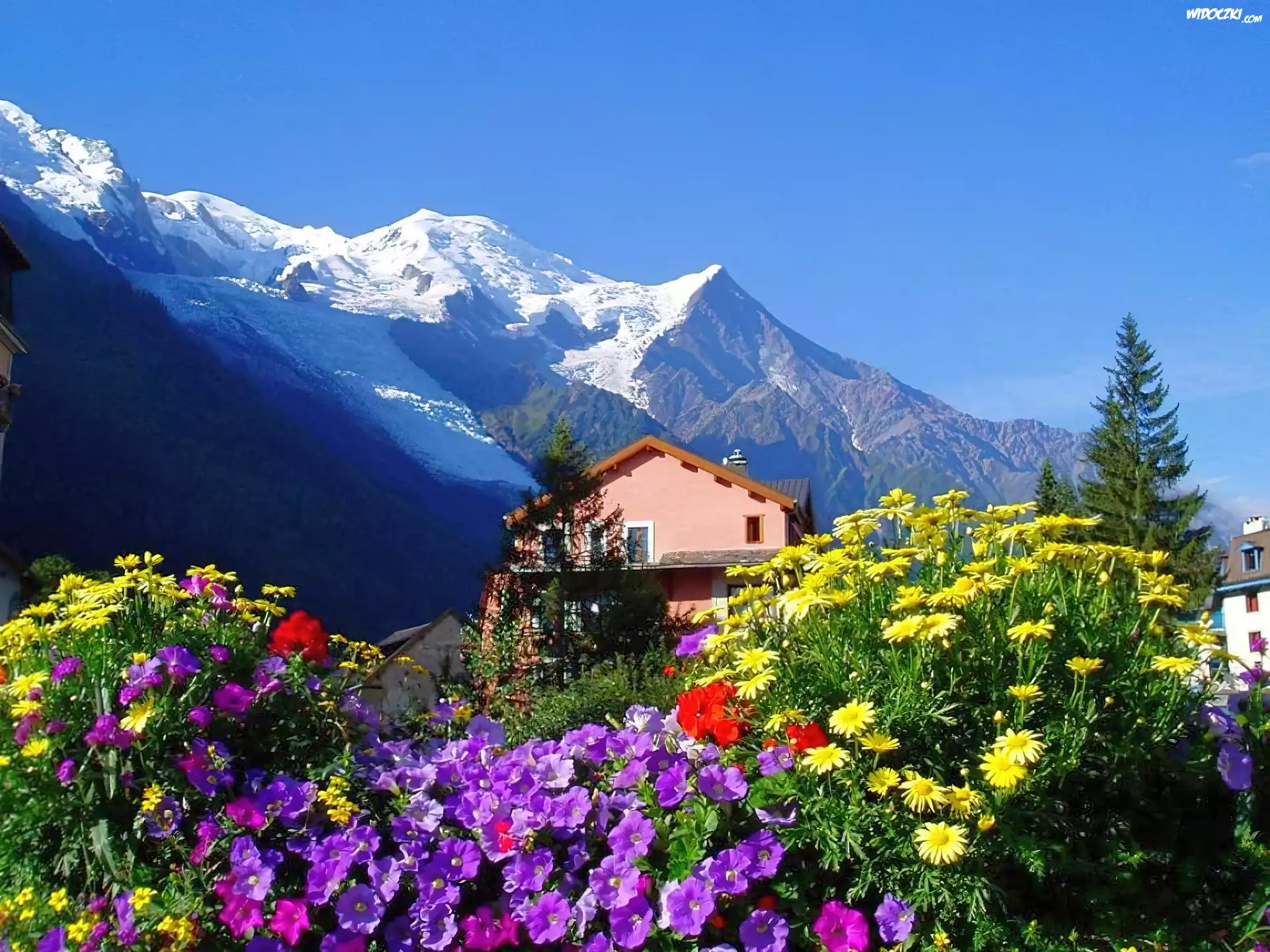 Zdjęcia, Dom, Góry, Kwiaty