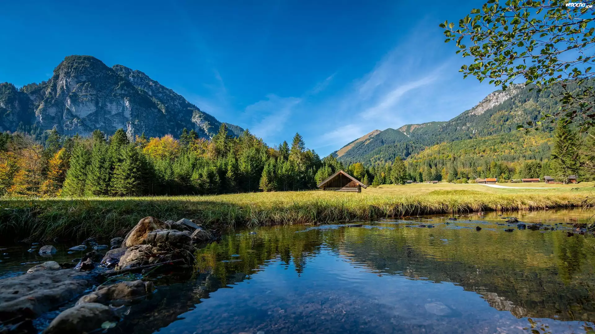 Zdjęcia, Dom, Jezioro, Łąka, Góry