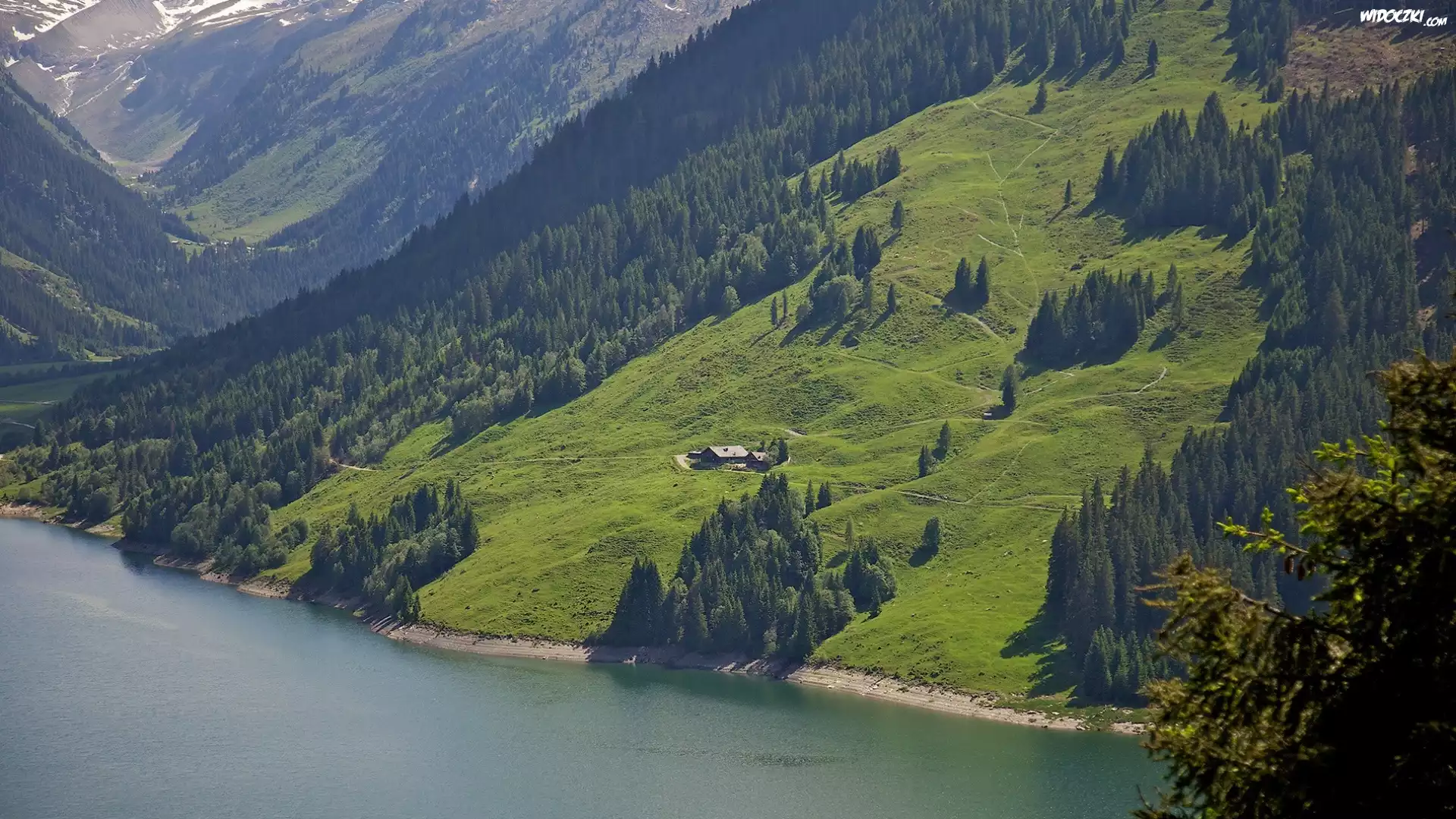 Zdjęcia, Góry, Lasy, Dom, Jezioro