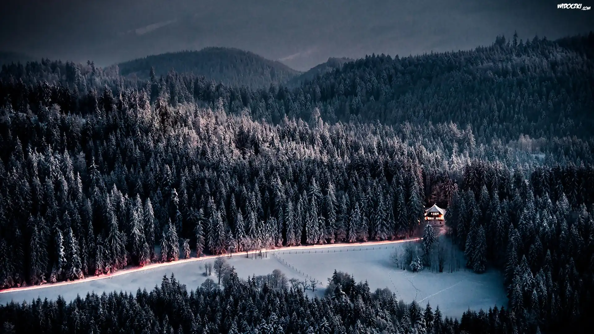 Zdjęcia, Góry, Lasy, Dom, Zima