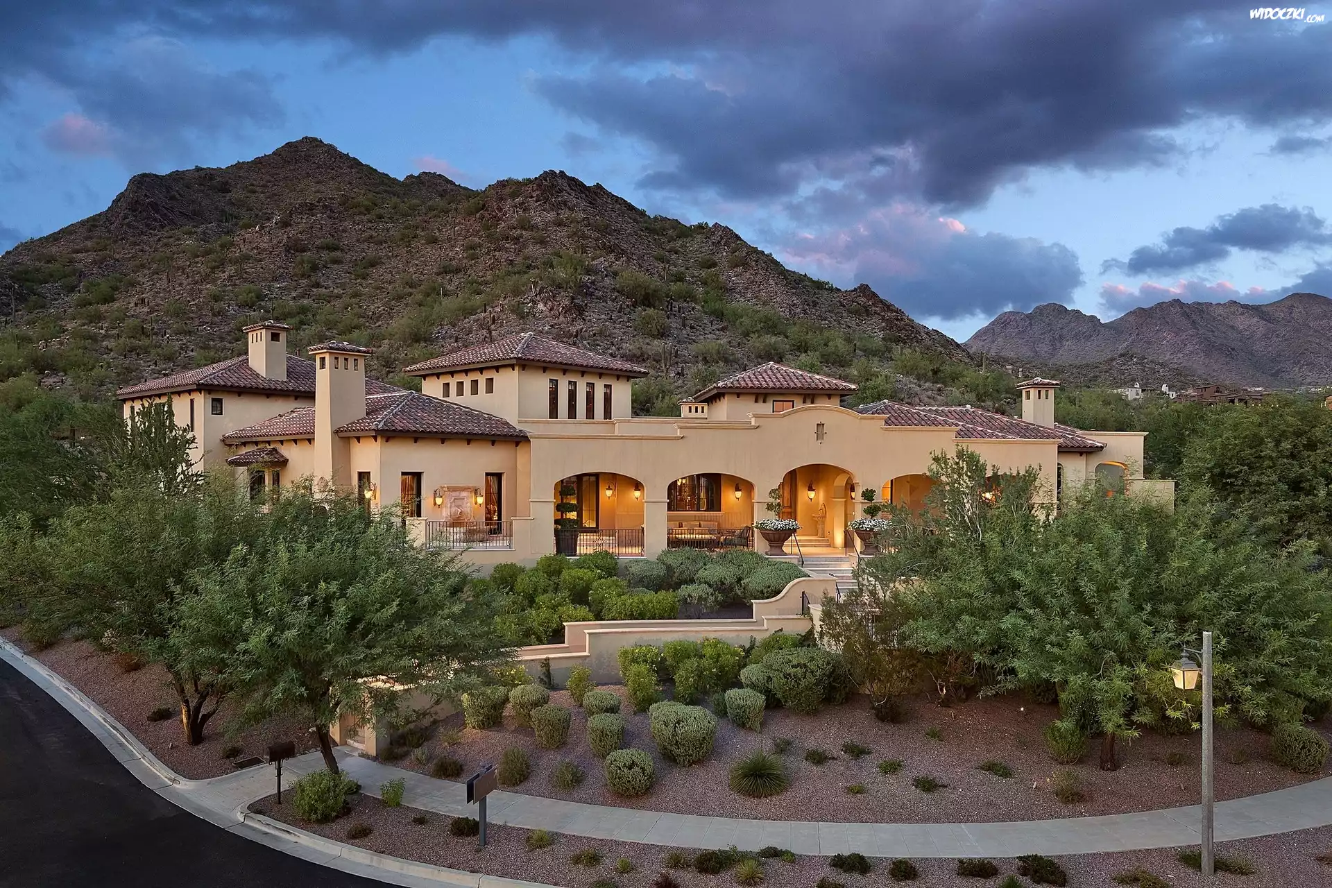 Zdjęcia, Góry, Oświetlony, Dom, Posesja