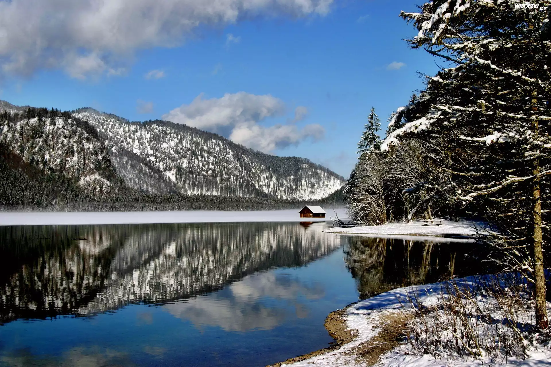 Renifery, Gałązka Góra, Niebo, Chmury Drewniany mostek, Zima Zachód Słońca, Chmura, Jezioro Stok, Zawody, Narciarskie Góra Zima, Drzewa, Przebijające, Światło Góra, Jeziora Zima, Drzewa Płot, Młyn, Wodny Zima,konie Jezioro, Chmury, Zachód, Słońca, Odbicie Góra Chata, Jezioro, Drzewa