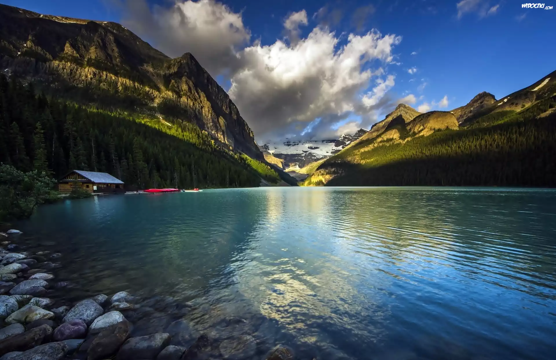 Zdjęcia, Góry, Las, Jezioro, Domek, Kanada