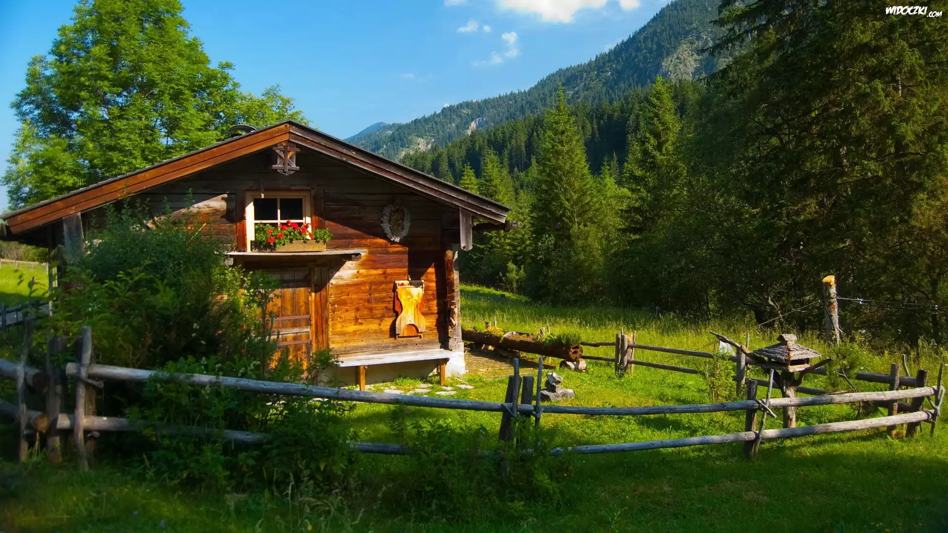 Zdjęcia, Góry, Lasy, Domek, Łąka