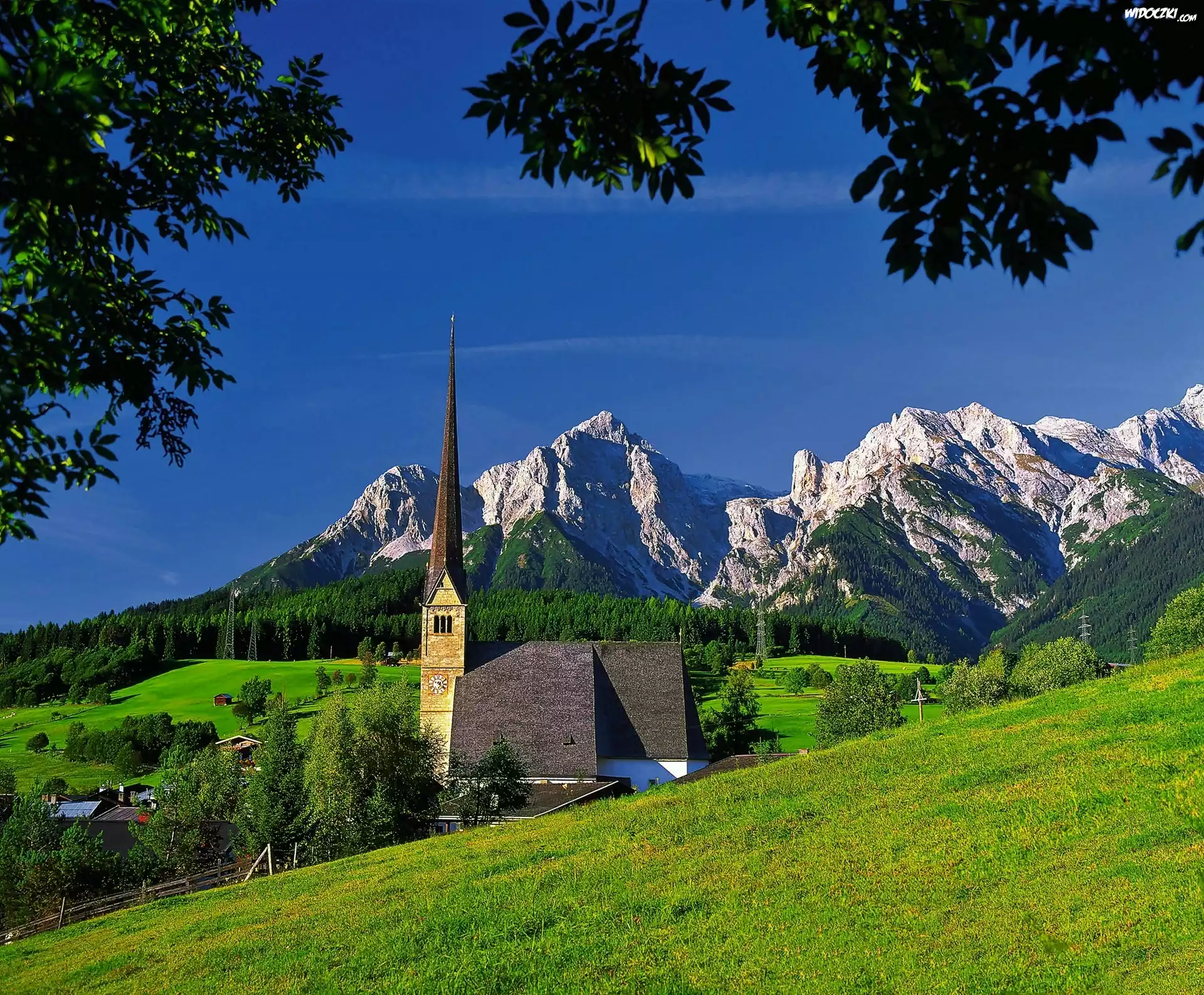 Zdjęcia, Góry, Lasy, Łąki, Domy, Kościół