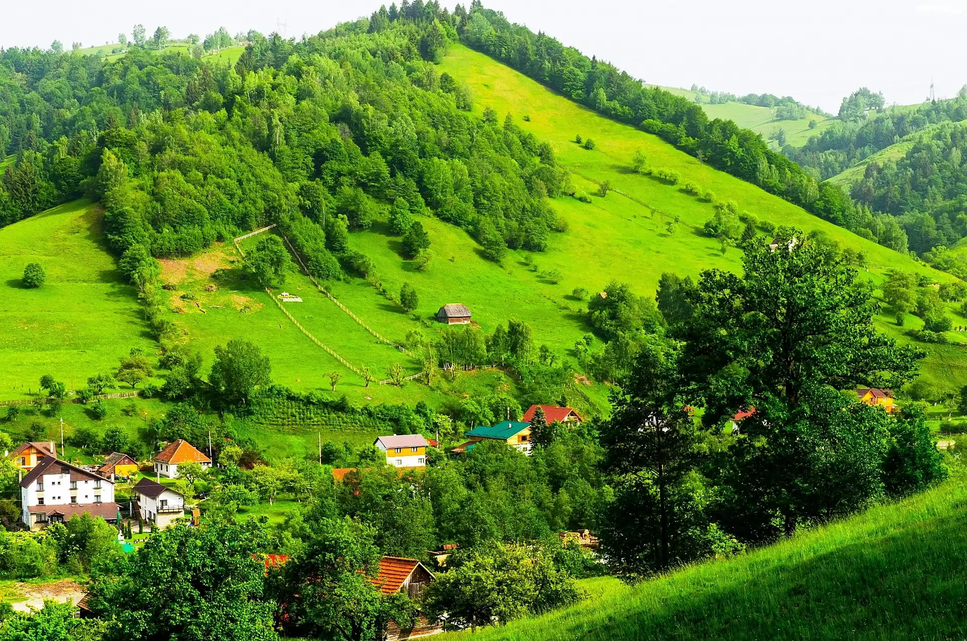 Zdjęcia, Góry, Lasy, Domy, Norwegia