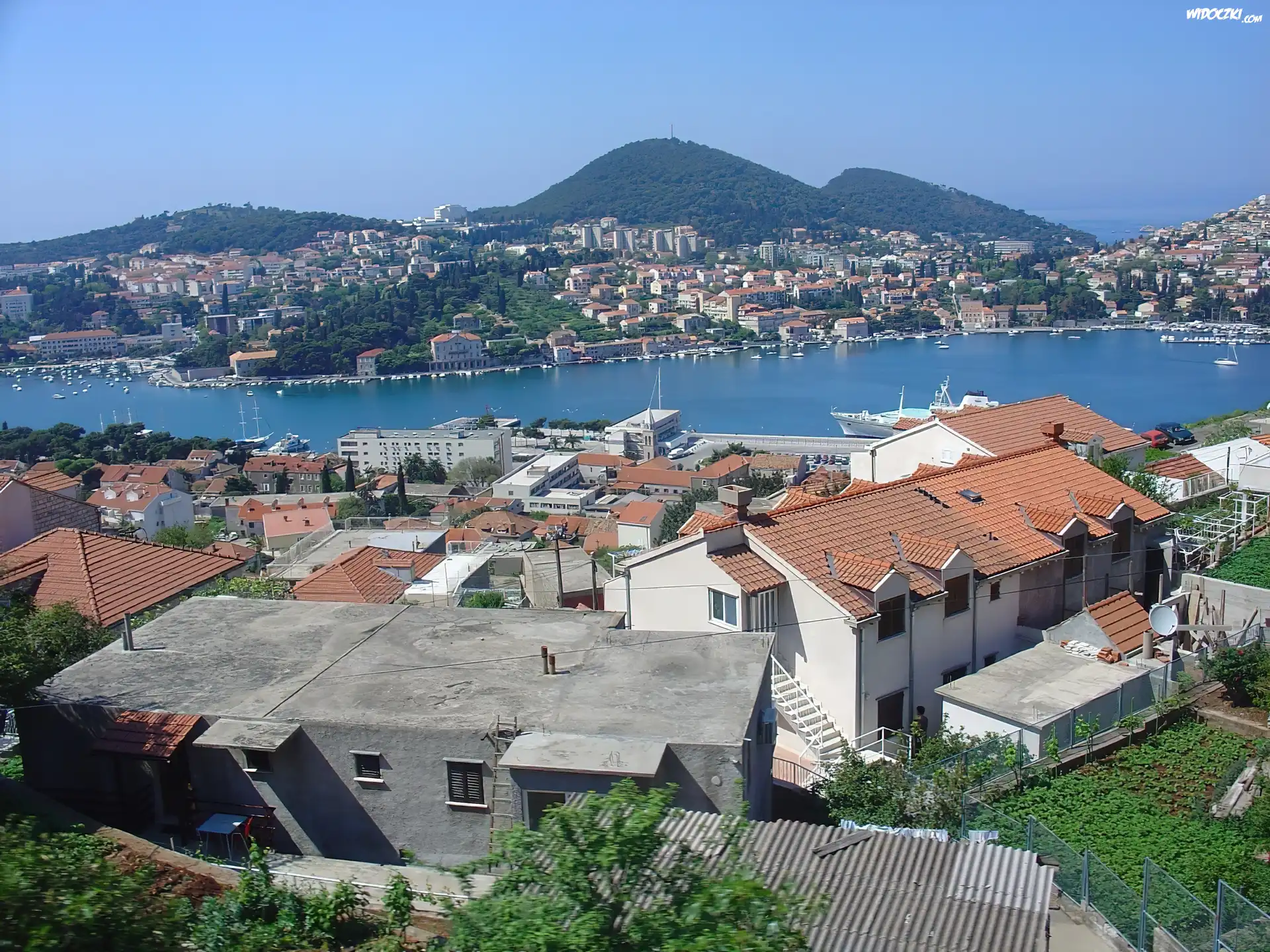 Zdjęcia, Góry, Niebo, Morze,dachy, domy , statki