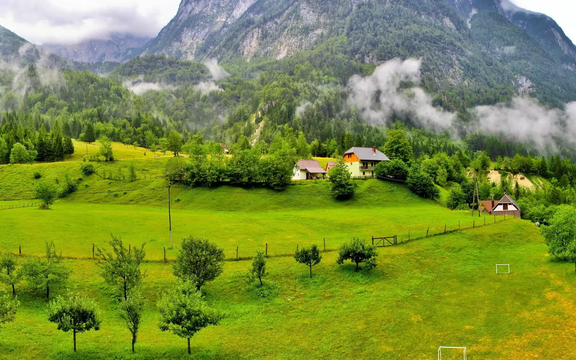 Zdjęcia, Góry, Lasy, Pola, Domy, Mgła