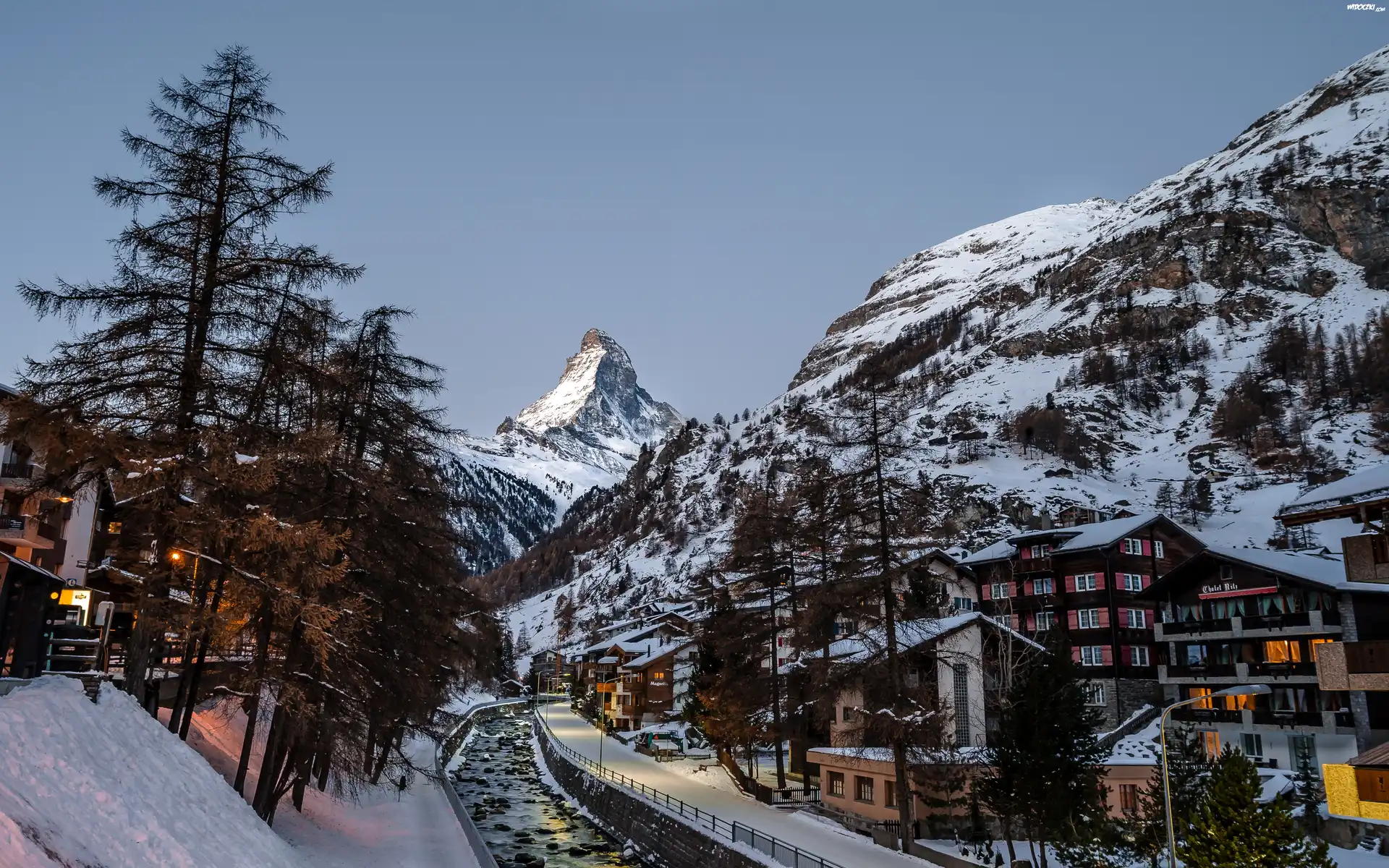 Zdjęcia, Góry, Zima, Domy, Szwajcaria