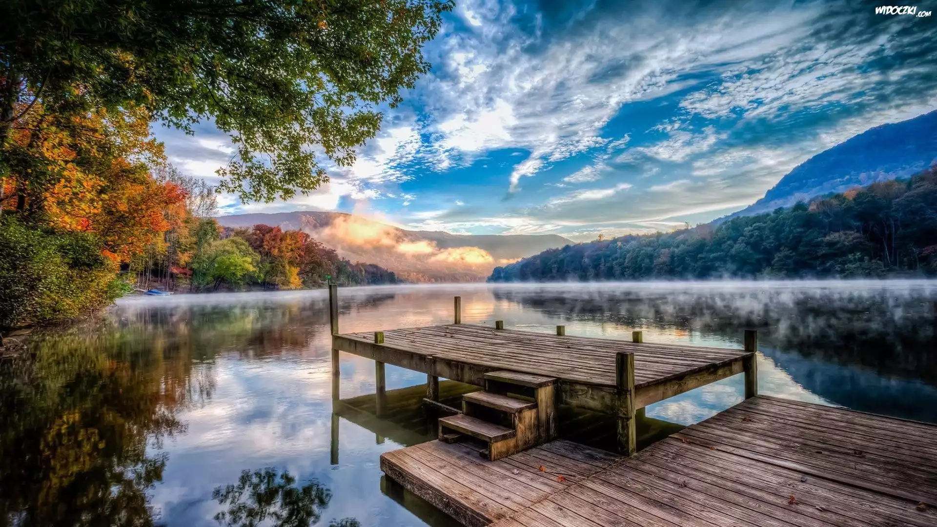 Zdjęcia, Góry, Jezioro, Drewniany, Pomost
