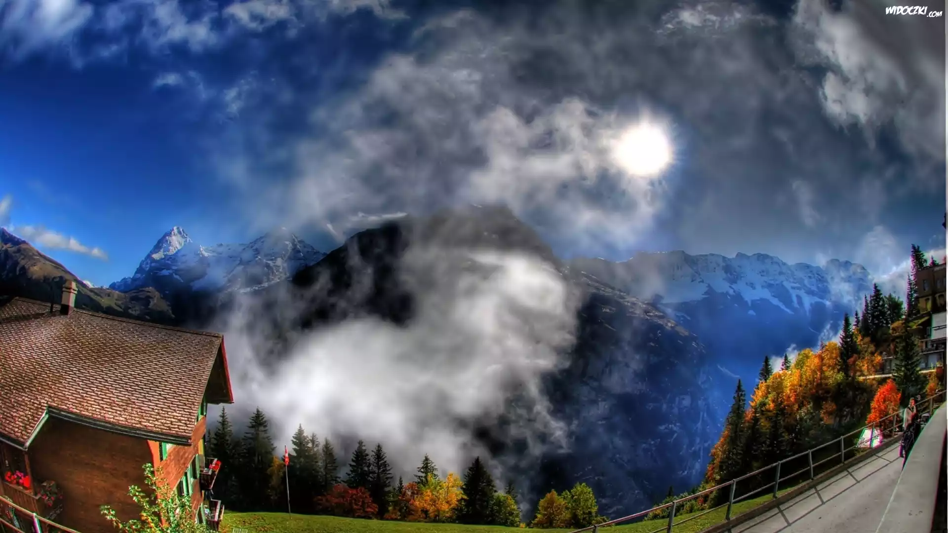 Zdjęcia, Góry, Alpy, Chmury, Las, Droga, Dom
