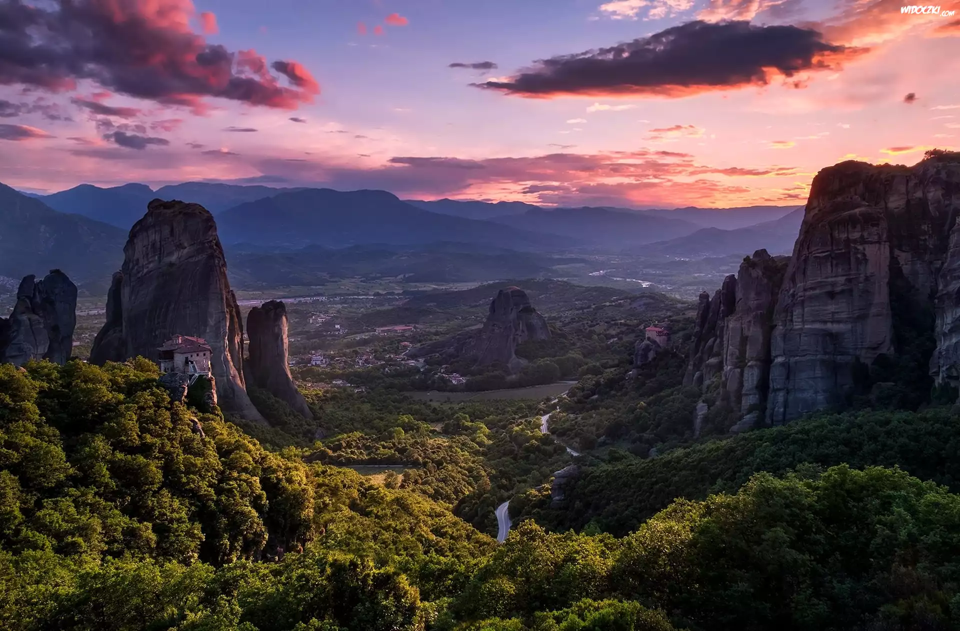 Zdjęcia, Góry, Wzgórza, Chmury, Miasto, Droga, Drzewa