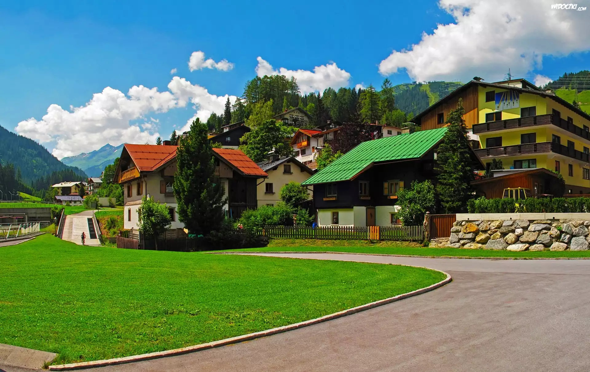 Zdjęcia, Góry, Domy, Droga, Szwajcaria