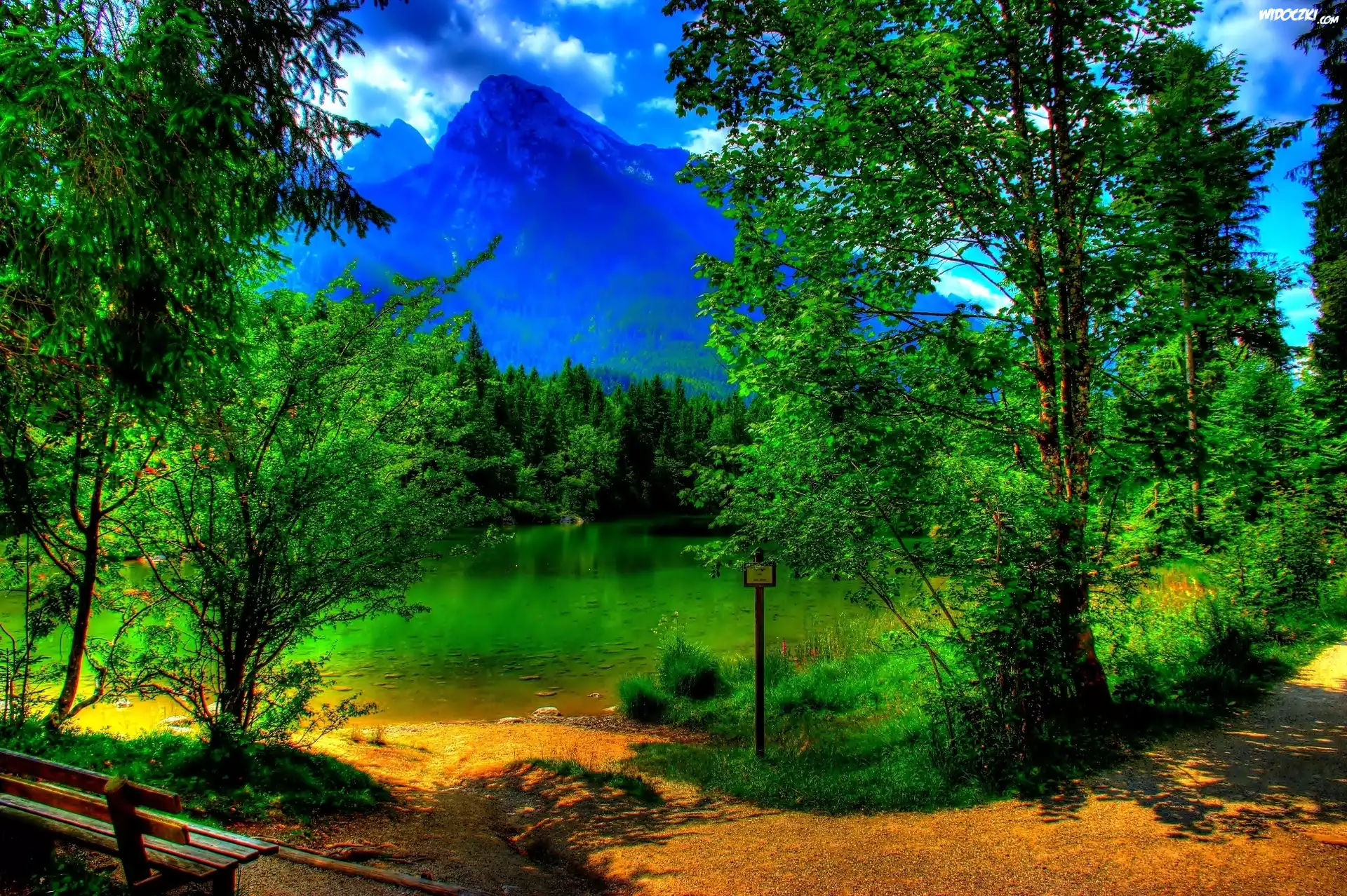 Zdjęcia, Góry, Las, Jezioro, Droga Ławka