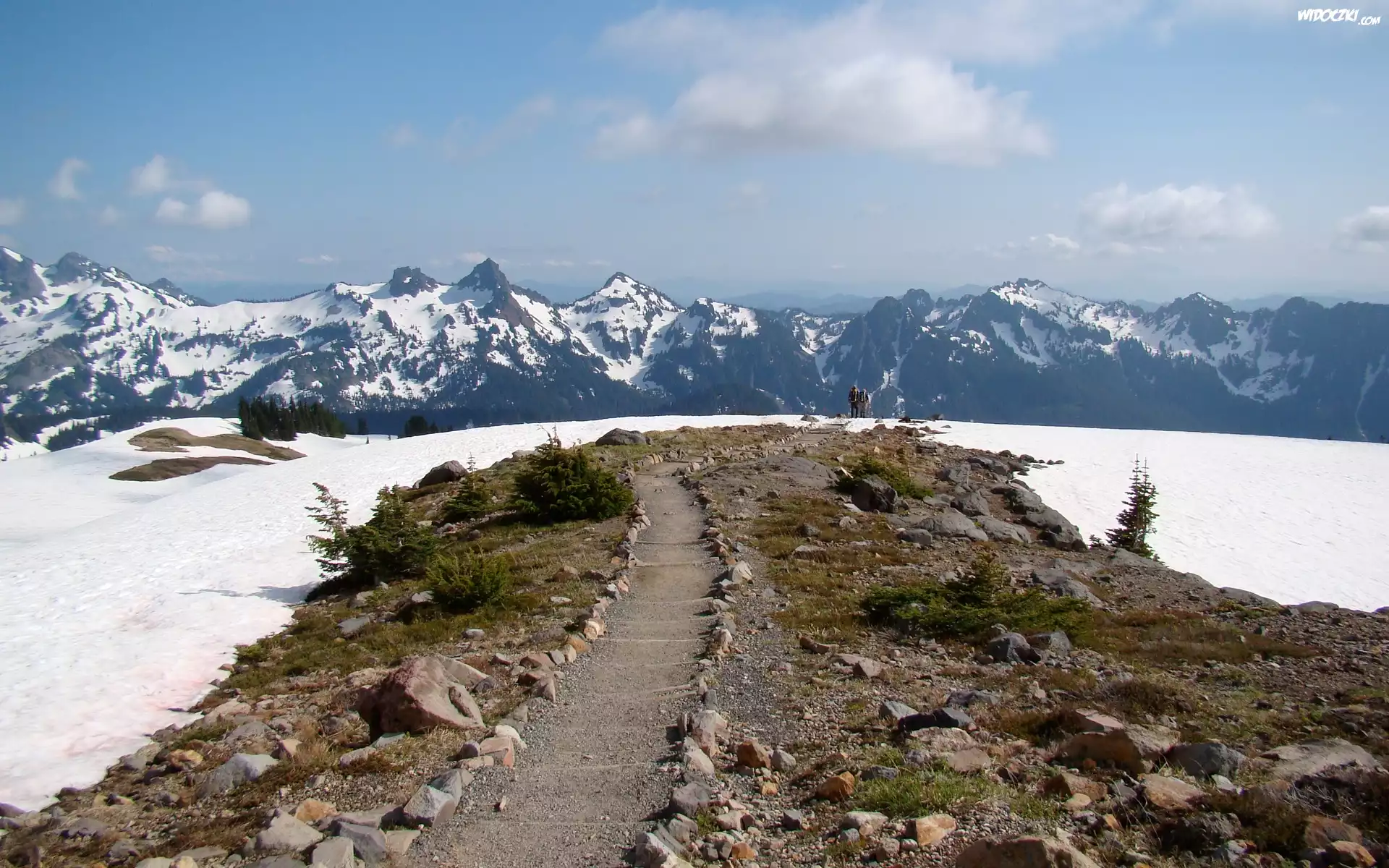 Zdjęcia, Śnieg, Droga, Kamienie, Góry, Niebo