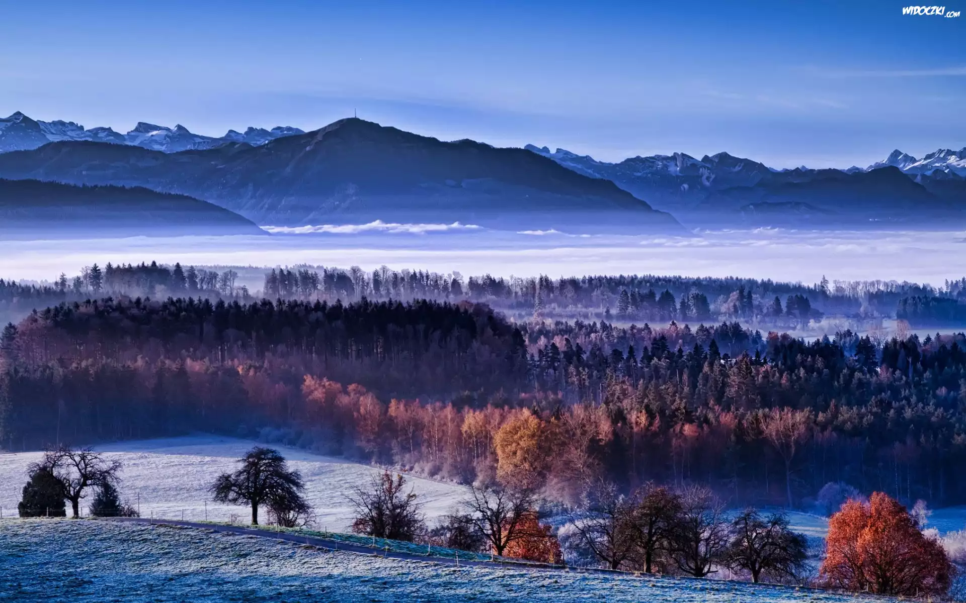 Zdjęcia, Góry, Lasy, Droga, Zima