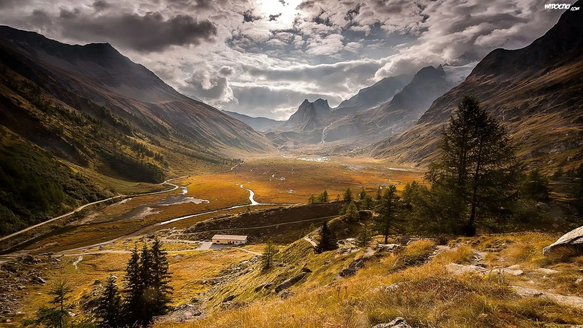Góry, Las, Rzeka, Droga, Budynek