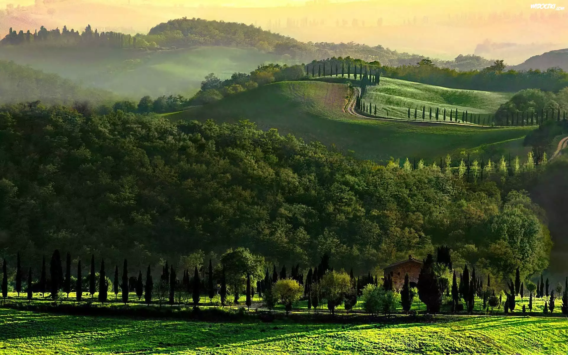 Zdjęcia, Góry, Lasy, Drogi, Mgła
