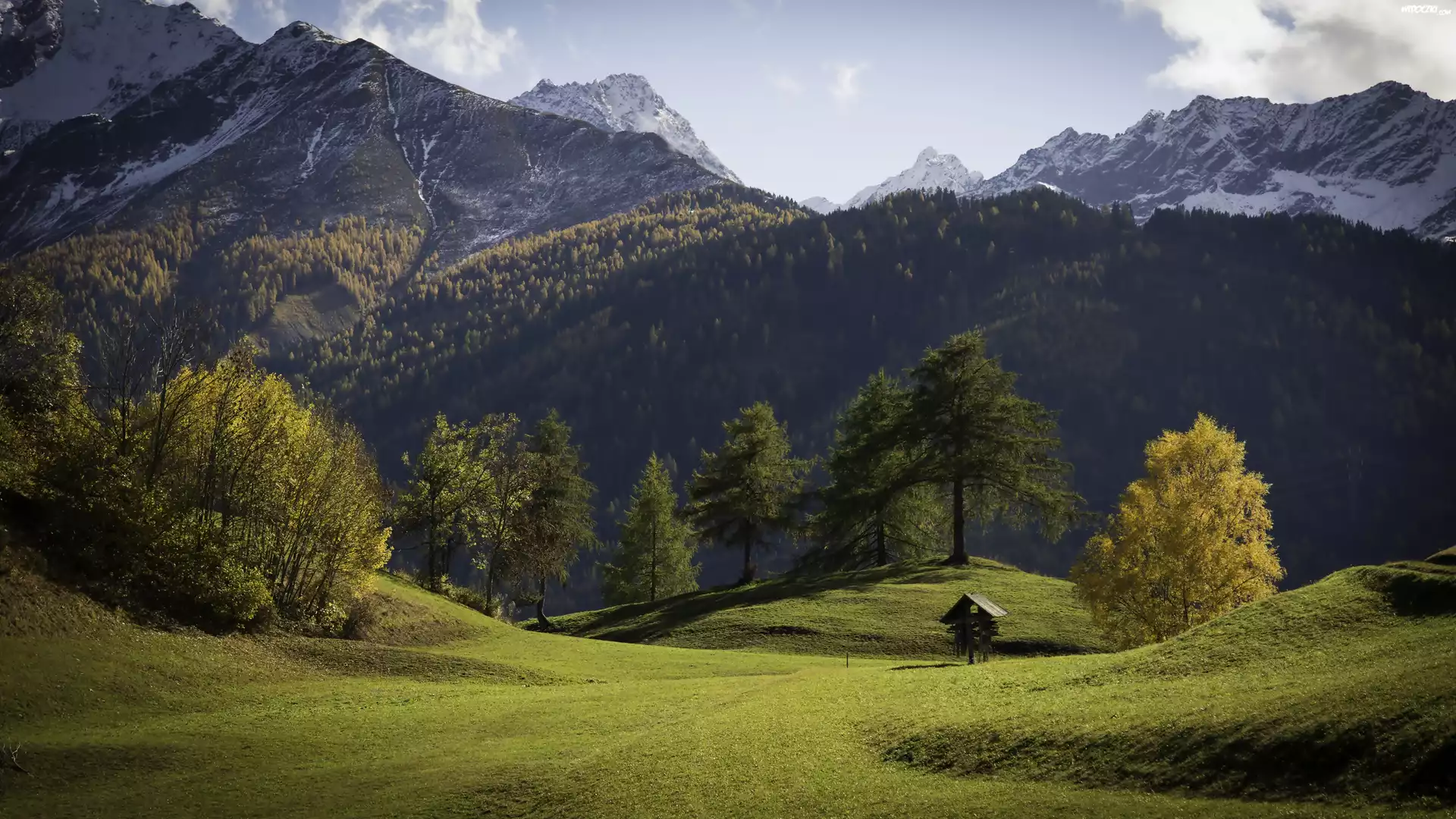 Zdjęcia, Góry, Łąka, Drzewa, Jesień