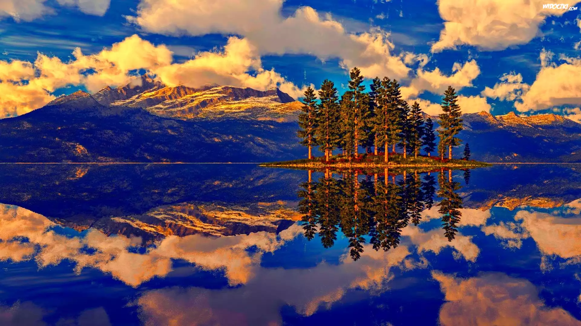 Zdjęcia, Góry, Chmury, Drzewa, Odbicie