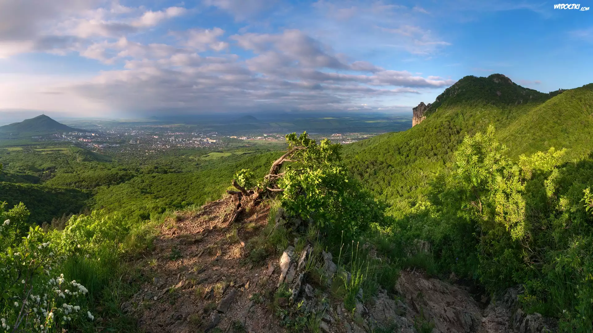 Zdjęcia, Góry, Skały, Dolina, Miasto, Drzewa, Rośliny