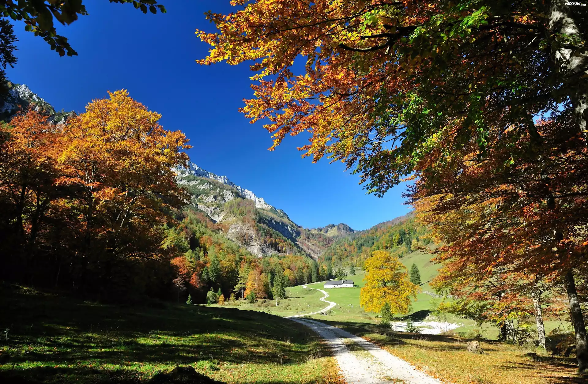 Zdjęcia, Góry, Droga, Drzewa, Jesień