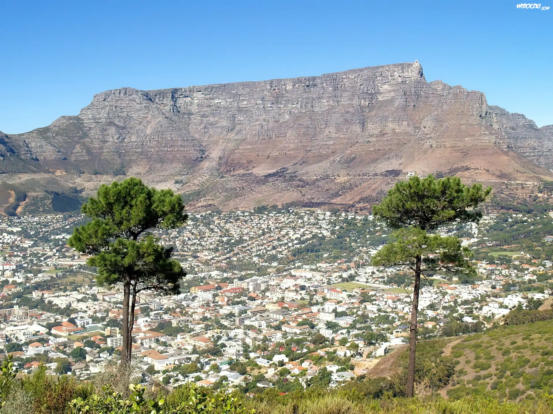 Zdjęcia, Góry,dwa drzewa , domki