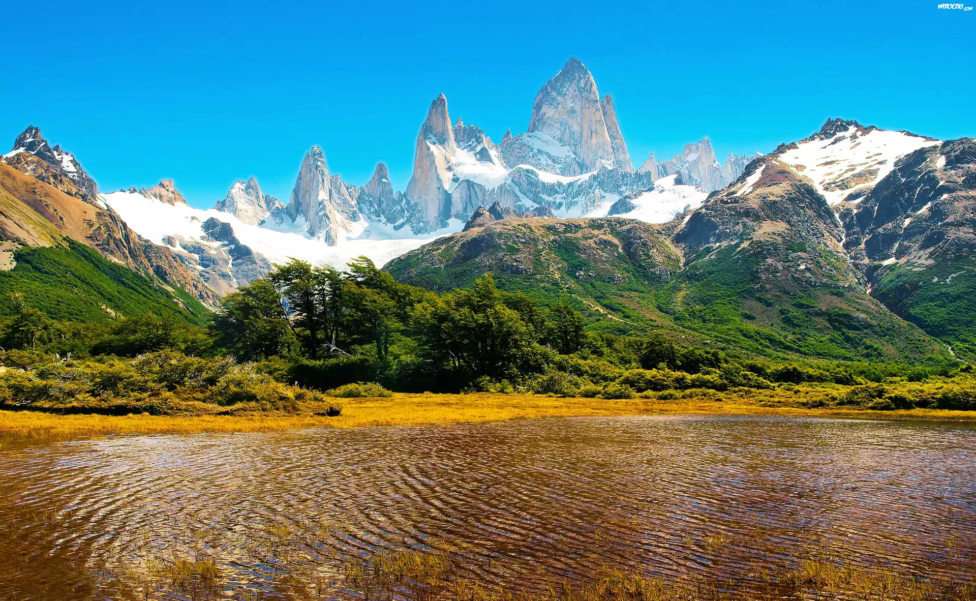 Zdjęcia, Góry, Jezioro, Drzewa, Argentyna