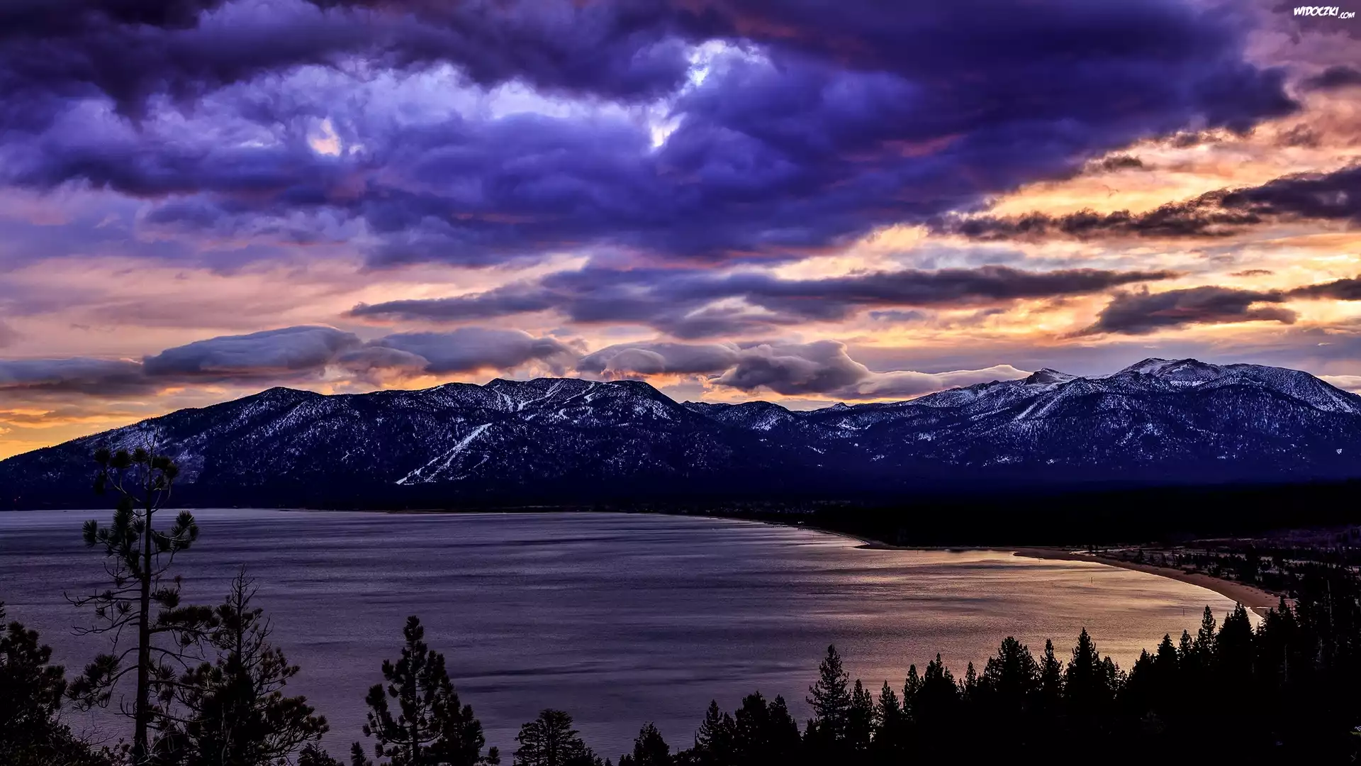 Zdjęcia, Góry, Jezioro, Drzewa, Chmury