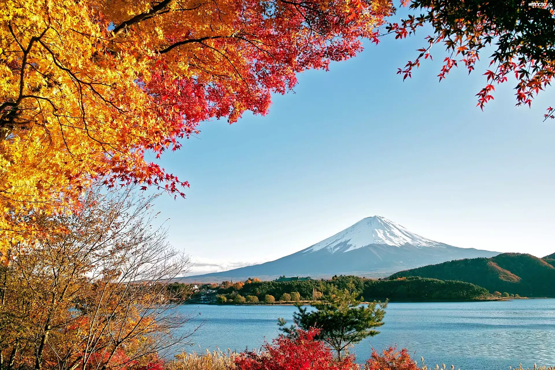 Zdjęcia, Góry, Jezioro, Drzewa, Jesień