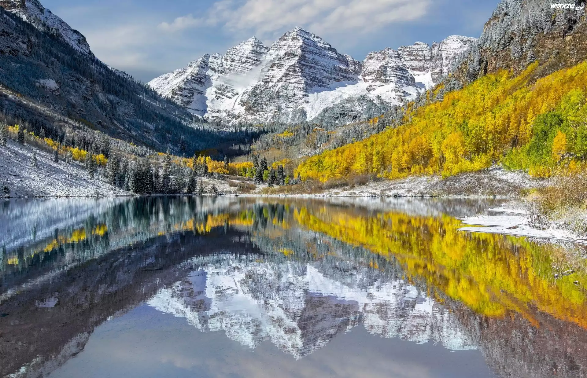 Zdjęcia, Góry, Śnieg, Jezioro, Drzewa, Odbicie
