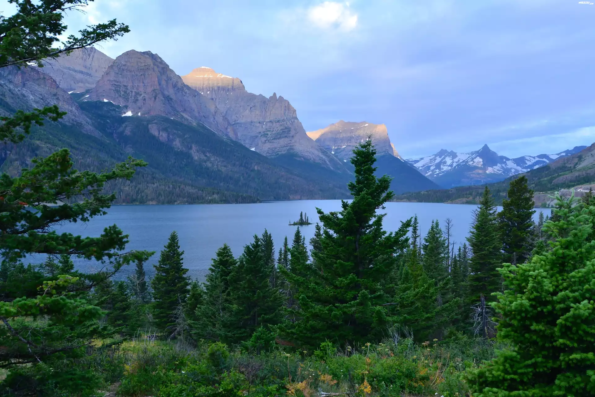 Góry, Jezioro, Drzewa, Roślinność